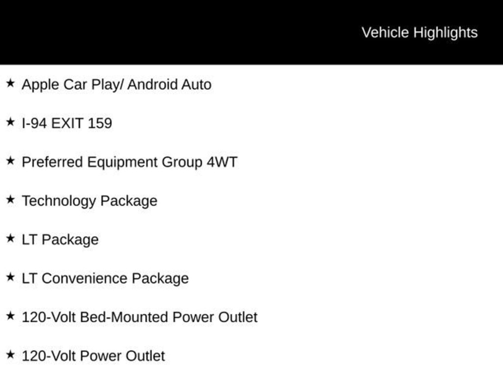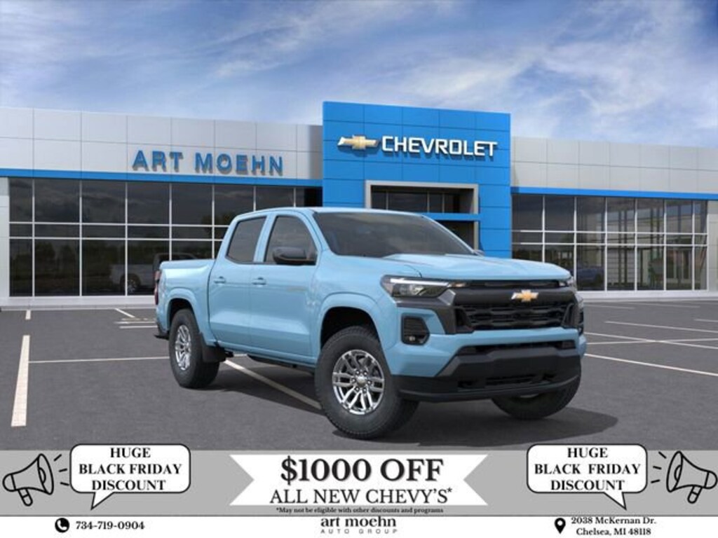 Snowdrift Metallic 2025 Chevrolet Colorado LT Apple Car Play/ Android Auto, I-94 EXIT 159, 4WD, 120-Volt Bed-Mounted Power Outlet, 120-Volt Power Outlet, Adaptive Cruise Control, Automatic Emergency Braking, Chevy Safety Assist, Driver Seatback Map Pocket, Dual Rear USB Ports (Charge Only), Evotex Seat Trim, Following Distance Indicator, Forward Collision Alert, Front LED Fog Lamps, Front Pedestrian & Bicyclist Braking, HD Surround Vision, Heated Steering Wheel, IntelliBeam Automatic High Beam On/Off, Lane Keep Assist w/Lane Departure Warning, LED Daytime Running Lamps, LED Headlamps, LED Stop Tail Lamp, LT Convenience Package, LT Package, Preferred Equipment Group 4WT, Rear Center Armrest, Rear Pedestrian Alert, Technology Package, Wireless Phone Charging. $4,425 off MSRP! Internet Price includes GM Employee discount, and the following rebates, which only apply to a purchase (lease incentives may be different). Certain individuals may not qualify, see dealer for details:$1000 - Chevrolet Consumer Cash Program. Exp. 12/01/2025