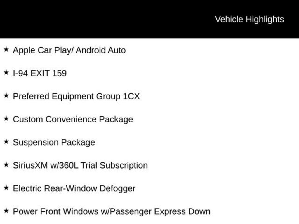 Black 2025 Chevrolet Silverado 2500HD Custom Apple Car Play/ Android Auto, I-94 EXIT 159, 10-Speed Automatic, 4WD, Black Cloth, 10-Way Power Driver Seat Adjuster w/Lumbar, 120-Volt Bed Mounted Power Outlet, 120-Volt Interior Power Outlet, 170 Amp Alternator, 2-Speed Electronic Shift Transfer Case, 3.5 Diagonal Monochromatic Display DIC, Black Mirror Caps, Bluetooth® For Phone, Chevrolet Connected Access Capable, Color-Keyed Carpeting Floor Covering, Compass, Custom Convenience Package, Deep-Tinted Glass, Dual Rear USB Ports (Charge Only), Electric Rear-Window Defogger, Electronic Cruise Control w/Set & Resume Speed, EZ Lift Power Lock & Release Tailgate, Front Rubberized Vinyl Floor Mats, HD Rear Vision Camera, Heated Vertical Trailering Mirrors, LED Cargo Area Lighting, Locking Tailgate, Manual Tailgate Function w/No EZ Lift, Manual Tilt-Wheel Steering Column, OnStar Services Capable, Power Door Locks, Power Front Windows w/Driver Express Up/Down, Power Front Windows w/Passenger Express Down, Power Rear Windows w/Express Down, Preferred Equipment Group 1CX, Push Button Start, Rear 60/40 Folding Bench Seat (Folds Up), Rear Rubberized Vinyl Floor Mats, Remote Keyless Entry, Remote Vehicle Starter System, SiriusXM w/360L Trial Subscription, Standard Tailgate, Suspension Package, Unauthorized Entry Theft-Deterrent System, Wi-Fi Hotspot Capable, Wireless Phone Projection. $5,877 off MSRP! Internet Price includes GM Employee discount, and the following rebates, which only apply to a purchase (lease incentives may be different). Certain individuals may not qualify, see dealer for details:$1000 - Chevrolet Consumer Cash Program. Exp. 12/01/2025
