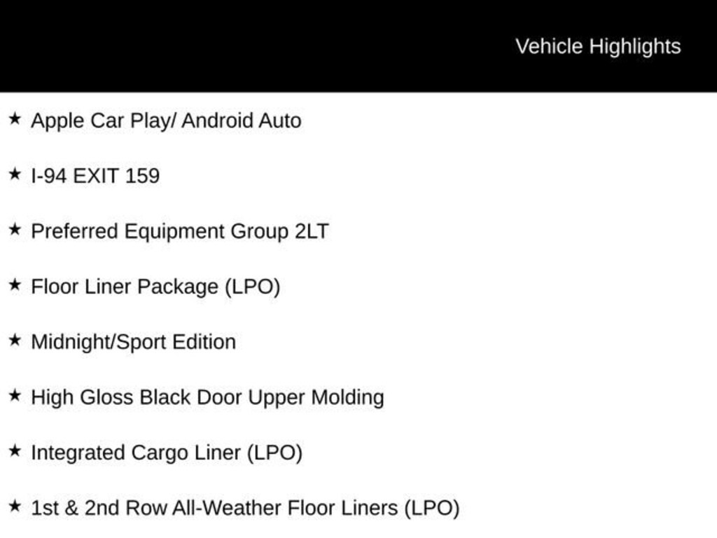 Black Metallic 2026 Chevrolet Traverse LT Apple Car Play/ Android Auto, I-94 EXIT 159, AWD, 1st & 2nd Row All-Weather Floor Liners (LPO), 3rd Row All-Weather Floor Liner (LPO), Floor Liner Package (LPO), High Gloss Black Door Upper Molding, Integrated Cargo Liner (LPO), Midnight/Sport Edition, Preferred Equipment Group 2LT, Wheels: 20 High Gloss Black Painted Aluminum. $3,720 off MSRP!