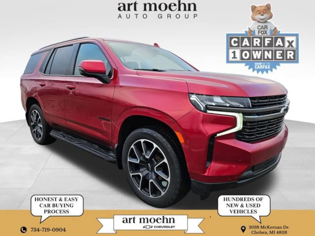 Apple Car Play/ Android Auto, Bluetooth, Remote Start, Backup Camera, Leather, Heated Seats, XM Satellite Radio, Keyless Entry, Power Liftgate, 3rd Row Seats, Power Seats, Local Trade, Clean One Owner Vehicle History Report, 4WD 4 Wheel Drive, Factory Tow Package, Lane Keep Assist, Z71 Off Road Package, OnStar, Rear Park Assist, Side Blind Zone Alert, Fresh Oil Change, I-94 EXIT 159, 4WD, Jet Black/Victory Red Leather.